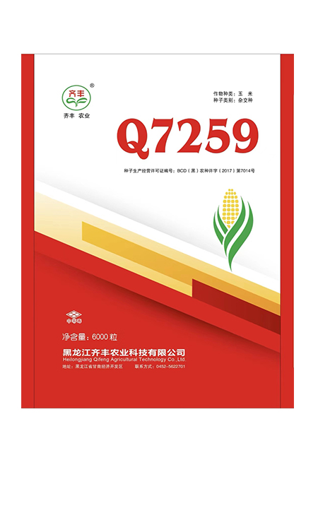 Q7259 其它审定情况: 品种主要性状适应种植生育日数125天左右,需≥10℃活动积温2500℃左右,株高280厘米左右,穗位高110厘米左右,果穗长锥型,长23厘米,穗租5.5厘米,穗行数14-18行,籽粒中齿型、黄色,百粒重30克左右,抗大斑病、丝黑稳病。抗旱性好,活秆成熟,具有较好的生态适应性,平均公顷产14500公斤左右,在适应地区最高产量达16500公斤左右。主要栽培措施适应区5月上旬播种,适宜选择中上等肥力地块种植,一般肥力条件下公顷保苗60000株左右,